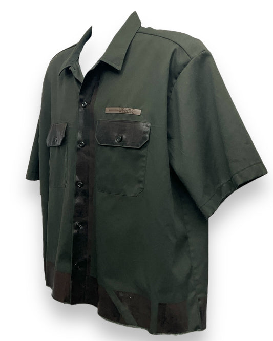VENEZIAN RUST Button-Down Short Sleeve Shirt Olive Brown Black Base
