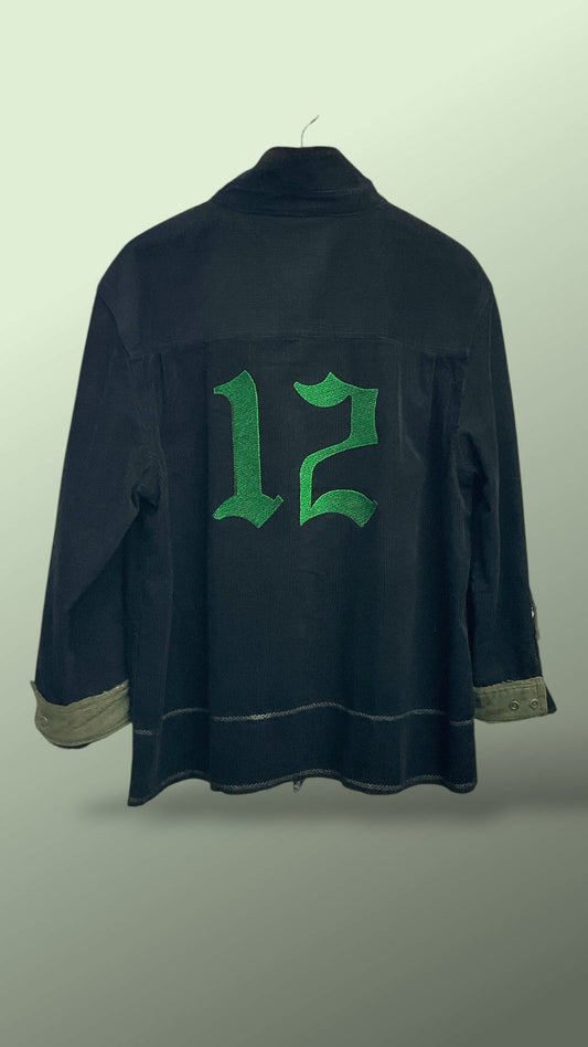 AGO Embroidered "LA12" Cropped Corduroy Shirt
