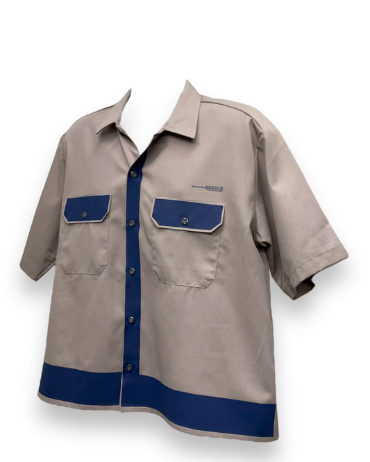 ART DECO Button-Down Short Sleeve Shirt Silver University Blue Frame