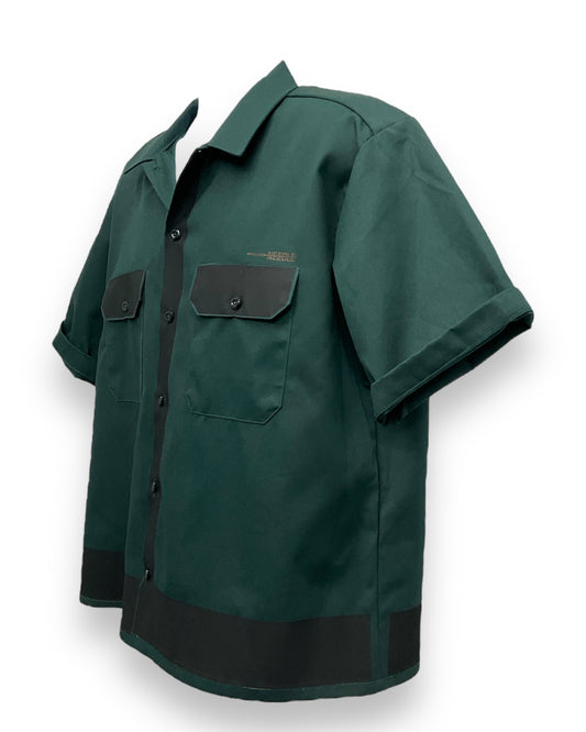 ART DECO Button-Down Short Sleeve Shirt K.Green Black Frame