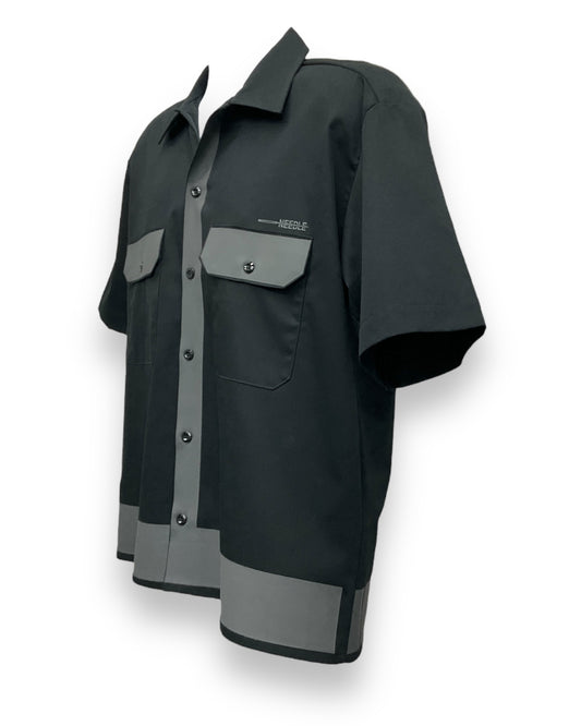 ART DECO Button-Down Short Sleeve Shirt Black GRWH