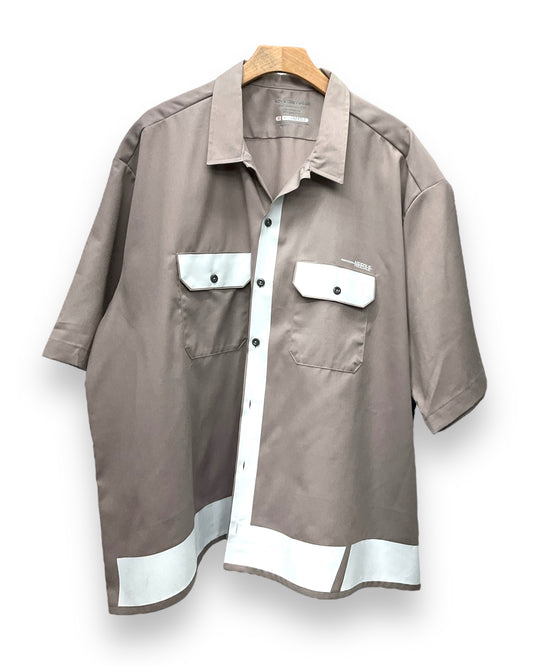 ART DECO Button-Down Short Sleeve Shirt D.Brown Gray Frame